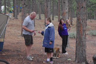 We had a "memorable" summer reunion at Panguitch Lake this year over the July 24th holiday. Cori & Jesse came up from Phoenix, Damien & Danielle came up from Hurricane, Arianne and her little boys came up from Enoch, Brittany and Cori came from West Point and Ray and I from Elk Ridge. E & M, T & B had to cancel at the last minute (did you have a premonition it was going to rain???) We had a lovely large group campsite where the kids could ride bikes to their hearts content in a fairly quiet area.